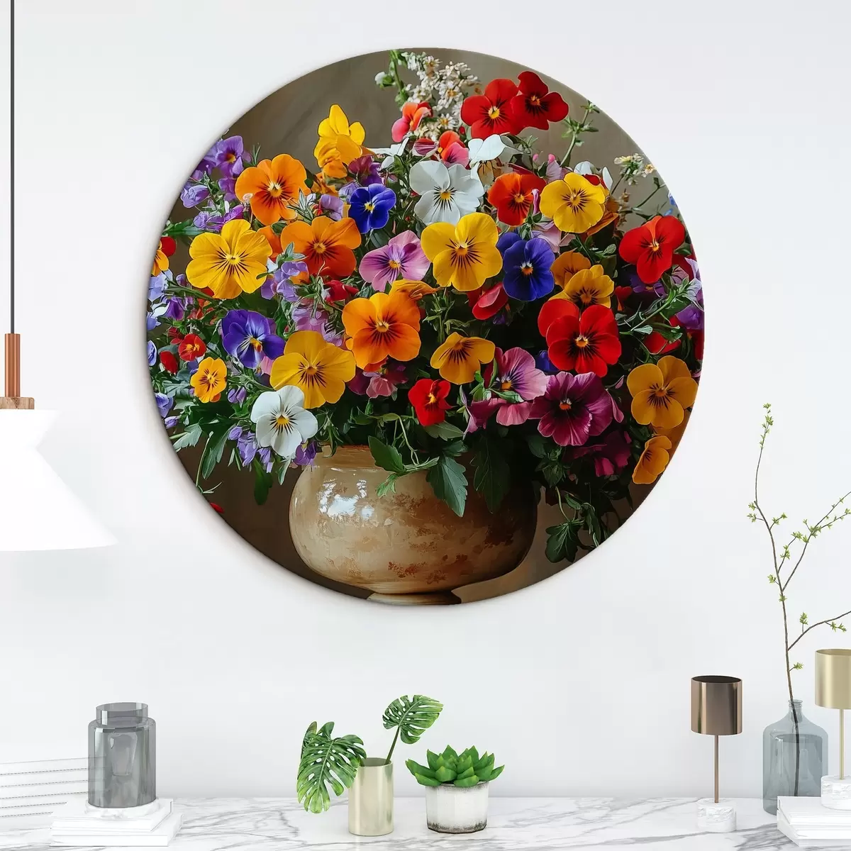 Ronde schilderijen Helder weelderig boeket in een vaas Nr r42976