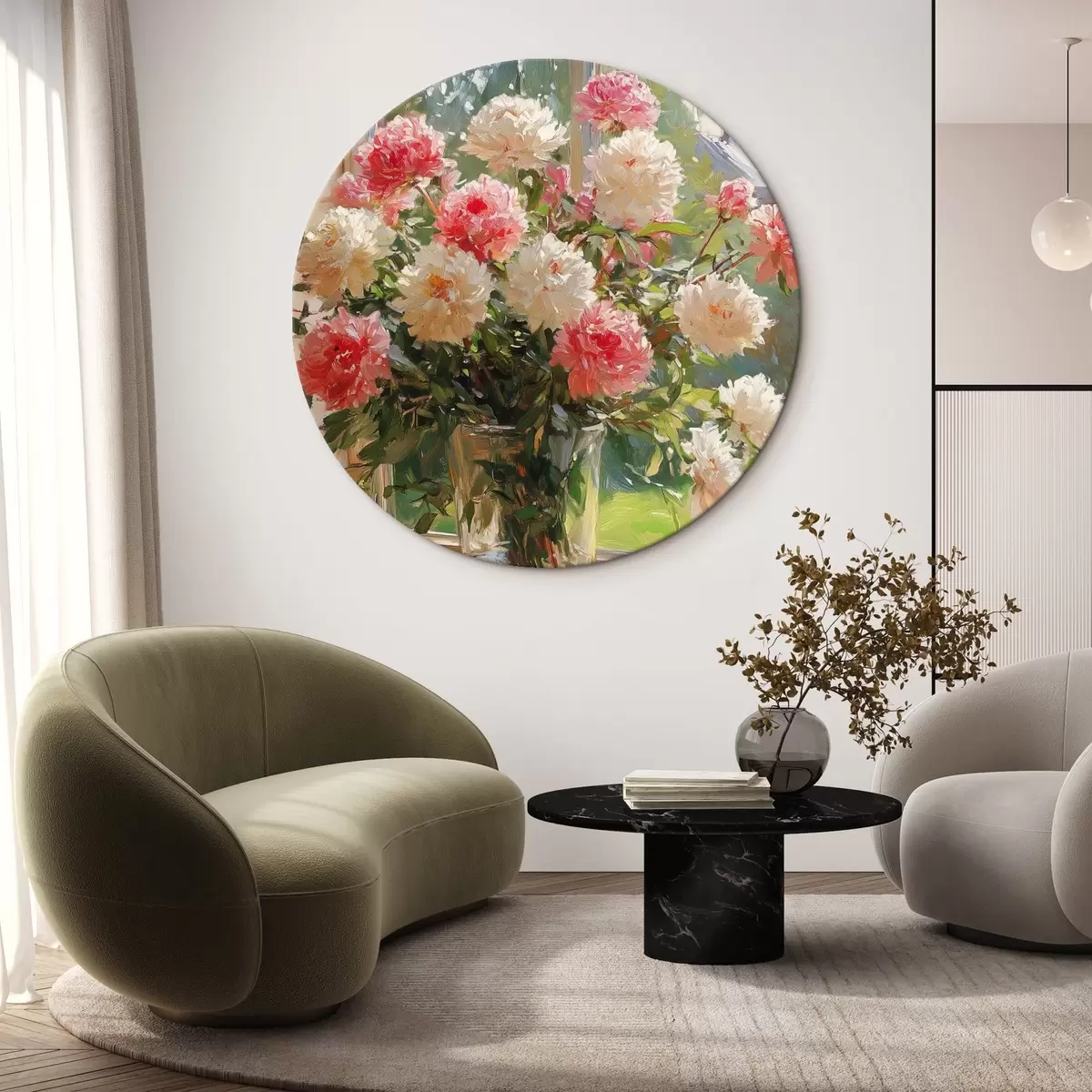 Ronde schilderijen Boeket op het raam in de stijl van olieverf Nr r42978