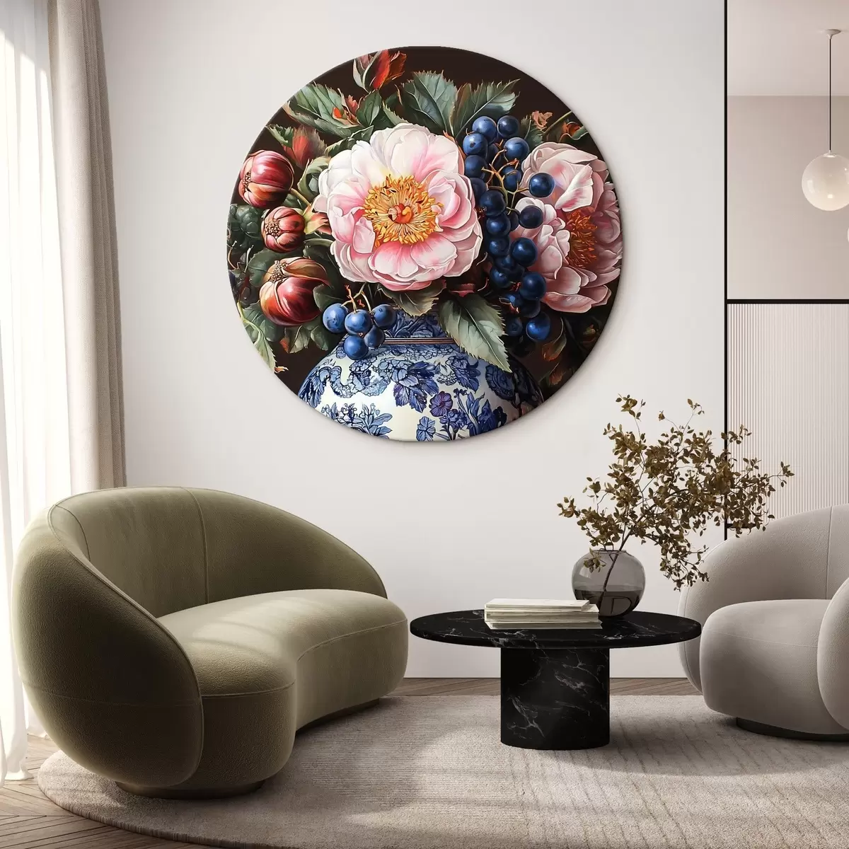 Ronde schilderijen Boeket van bloemen en fruit Nr r42980