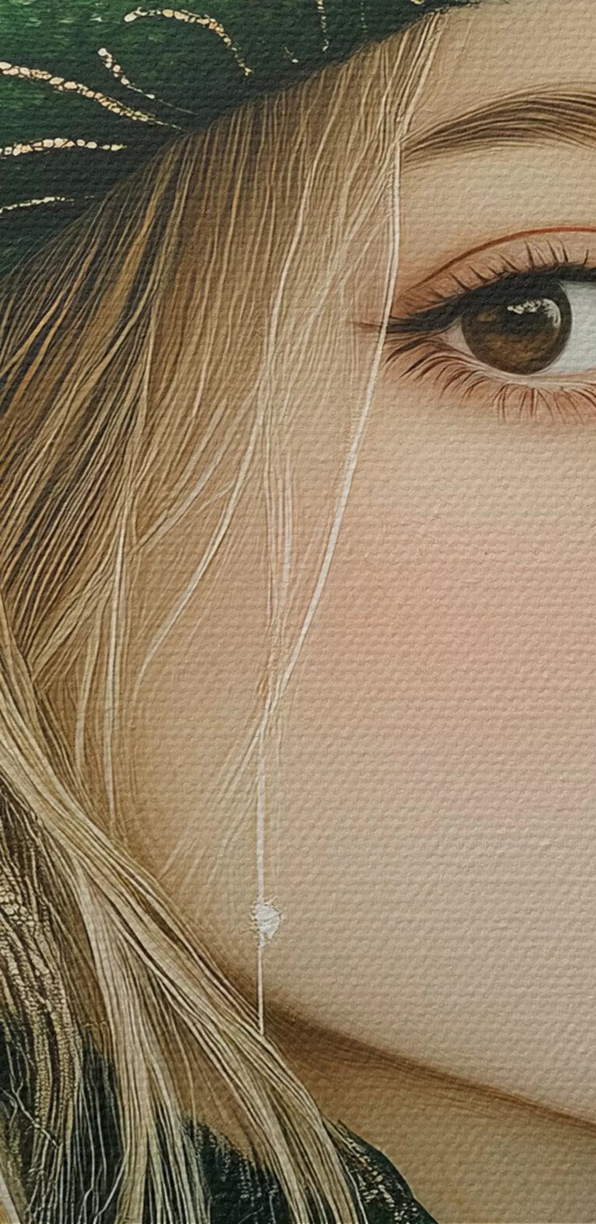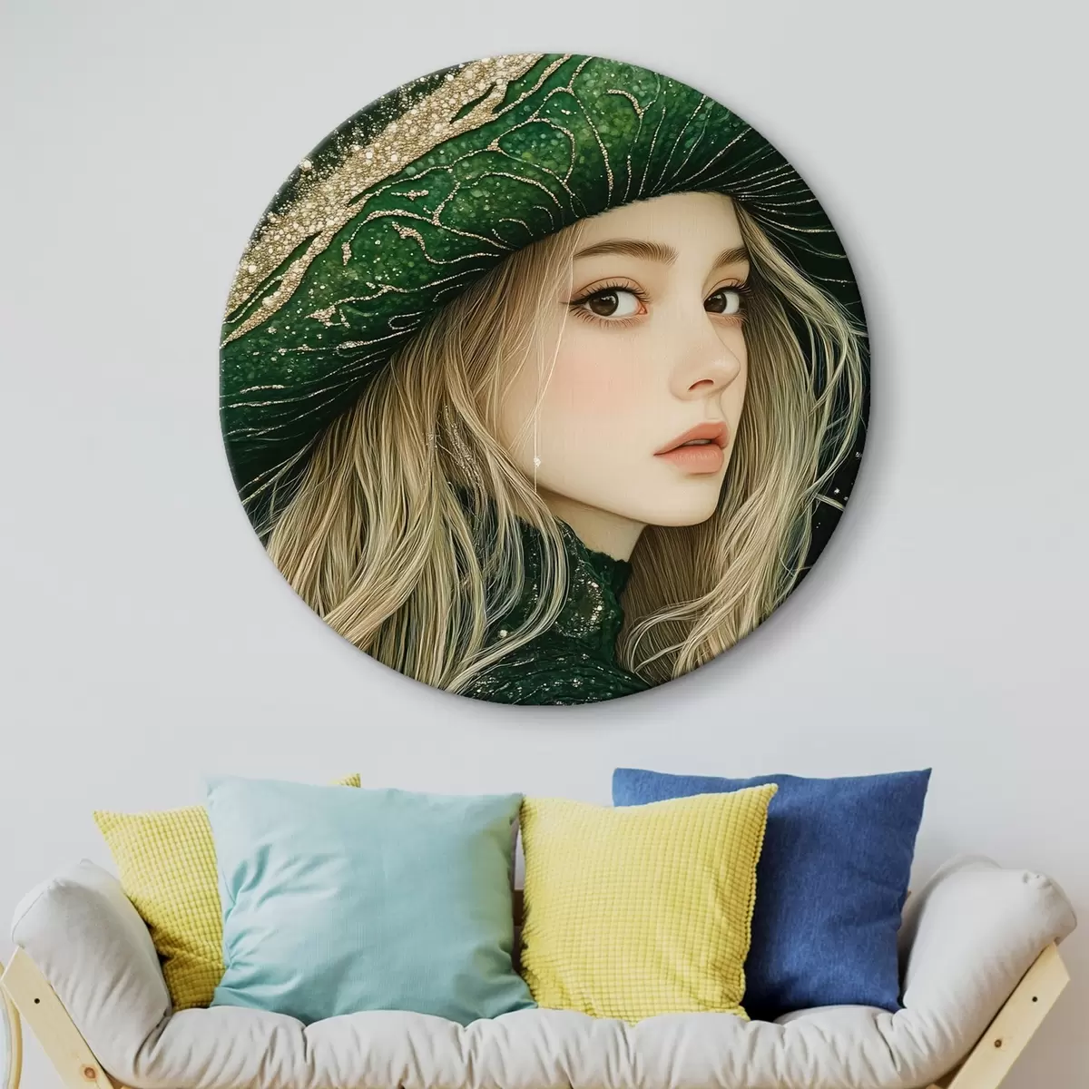 Ronde schilderijen Portret van een meisje met een groene hoed Nr r42982