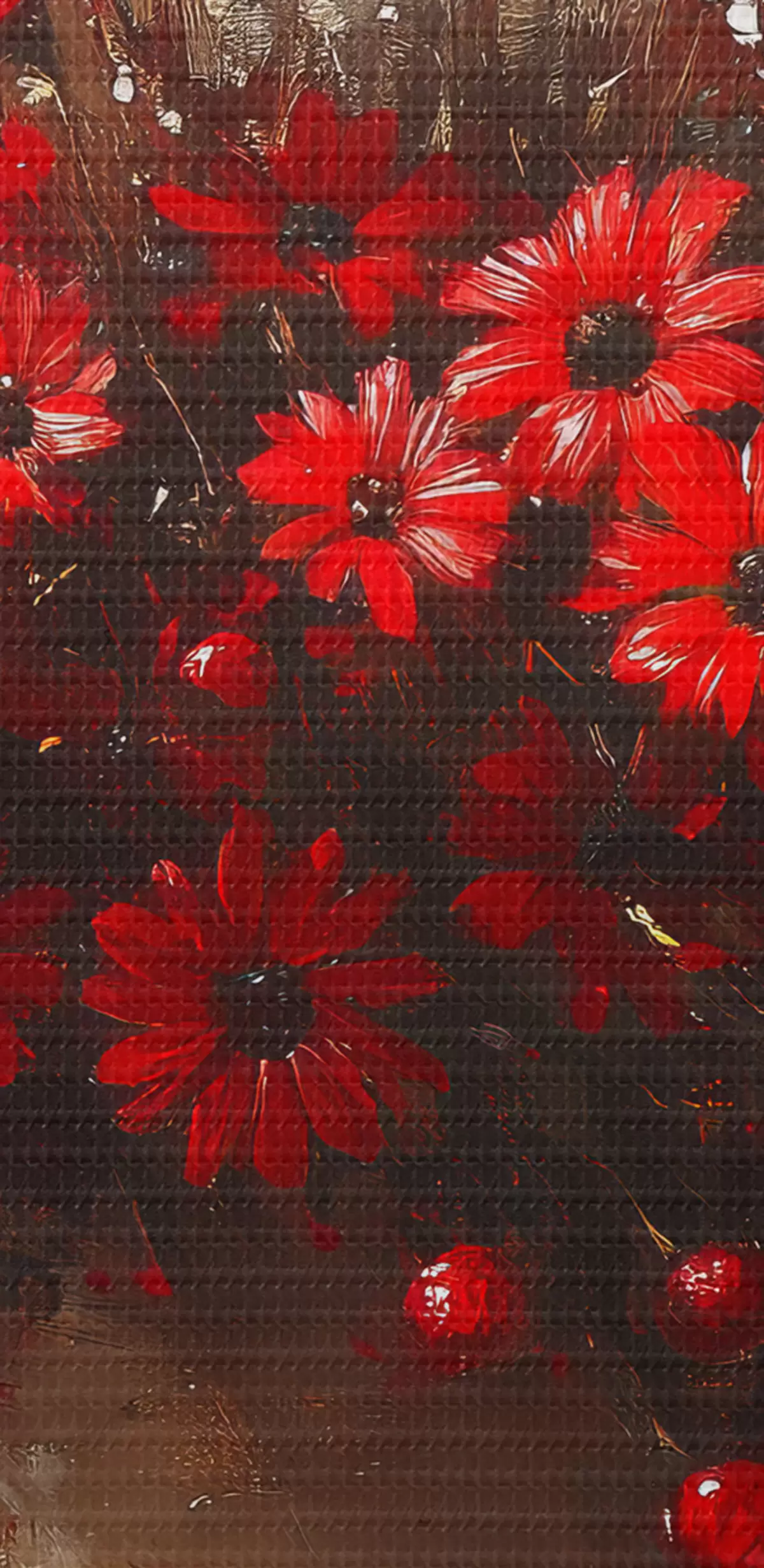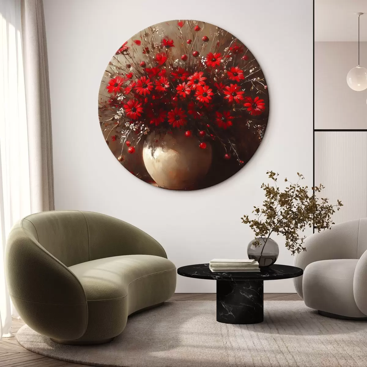 Ronde schilderijen Rood boeket in een vaas Nr r42983