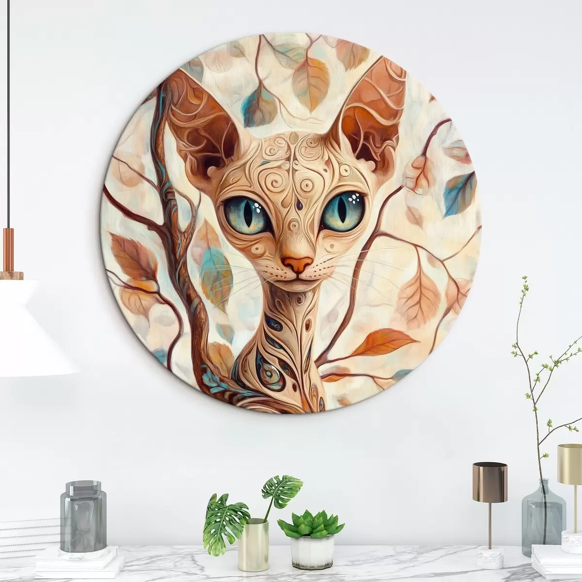 Ronde schilderijen Poes en boomtakken Nr r42988