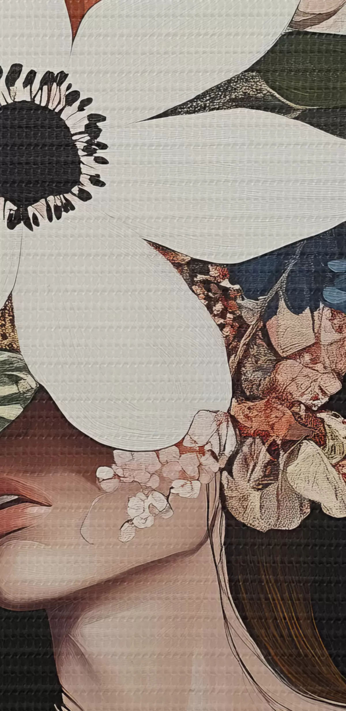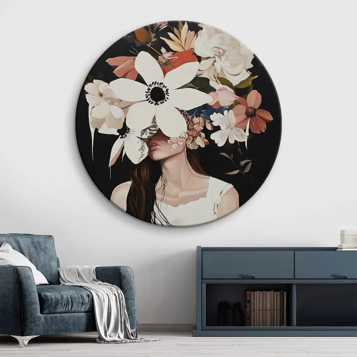 Ronde schilderijen Meisje met bloemen op haar gezicht Nr r42989