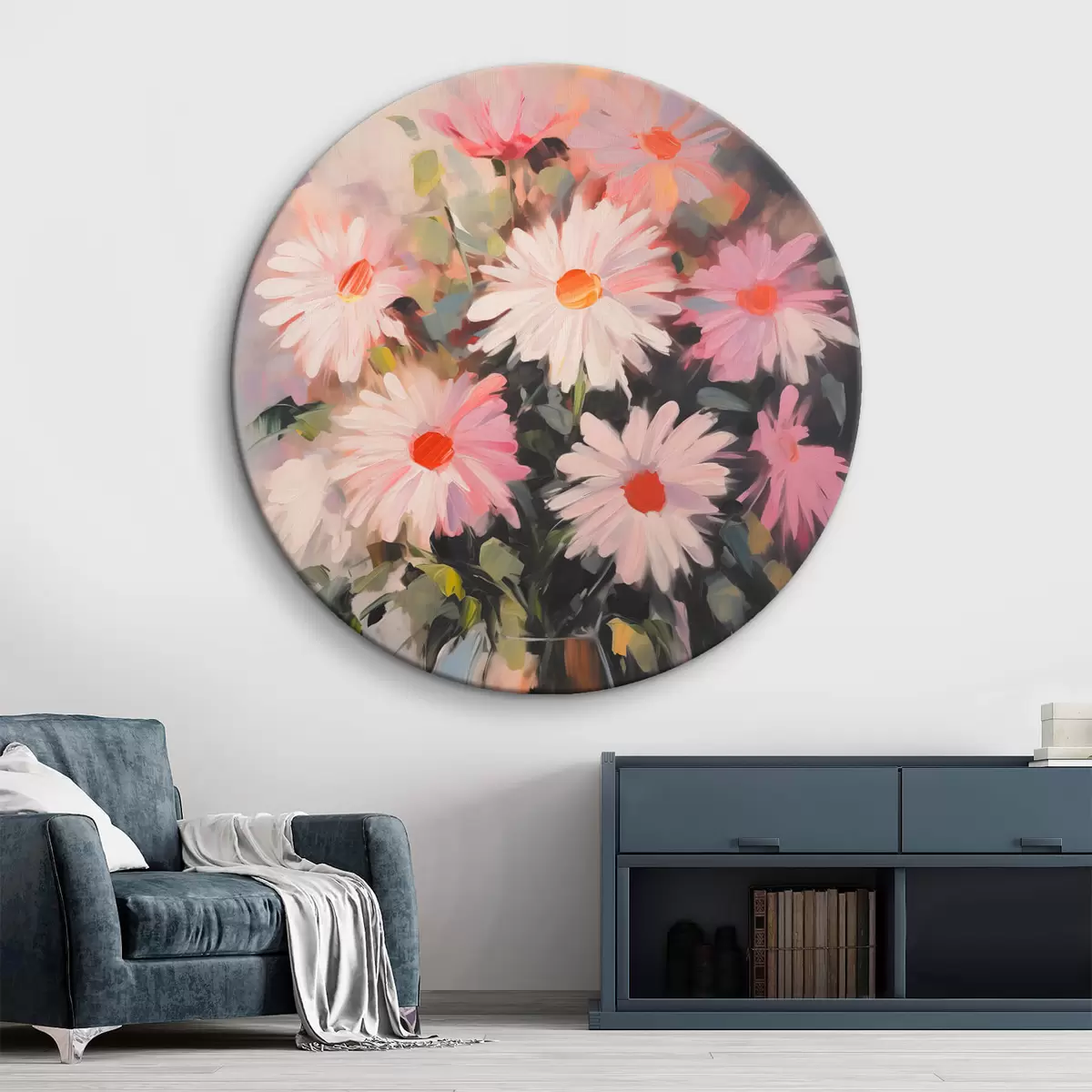 Ronde schilderijen Een boeket bloemen in een vaas Nr r42997