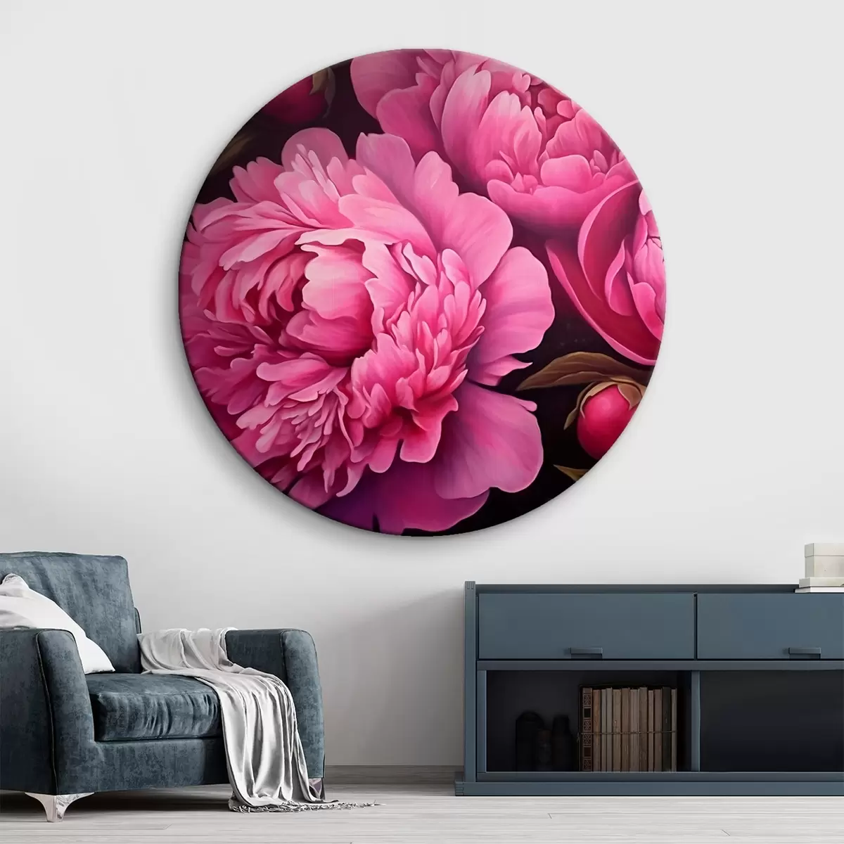 Ronde schilderijen Abstractie in paarse en gele tinten r43004