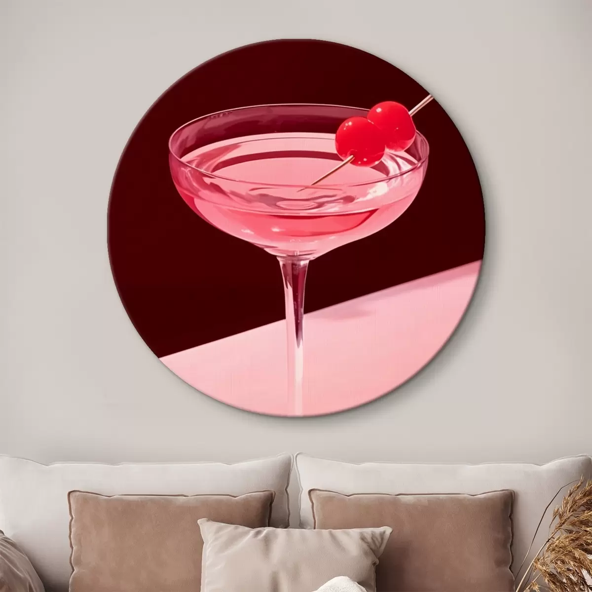 Ronde schilderijen Cocktailglas met een kers Nr r43016