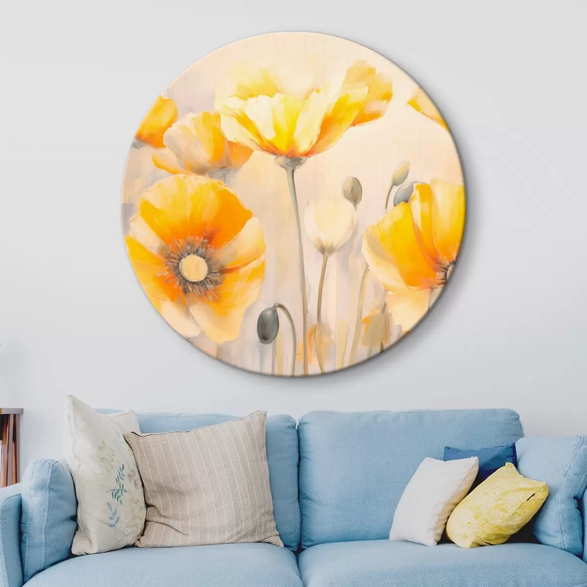 Ronde schilderijen Gele klaprozen r43024