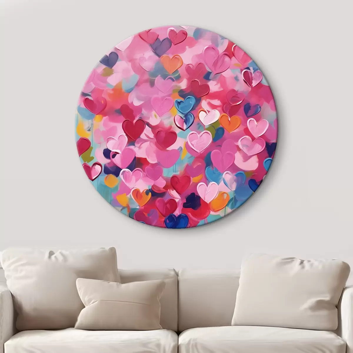 Ronde schilderijen Kleurrijke harten, imitatie van verf Nr r43033