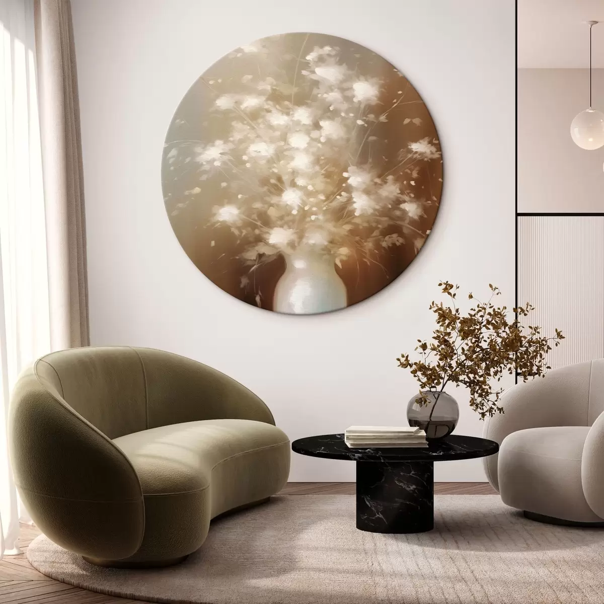 Ronde schilderijen Vaas met witte bloemen planten Nr r43039