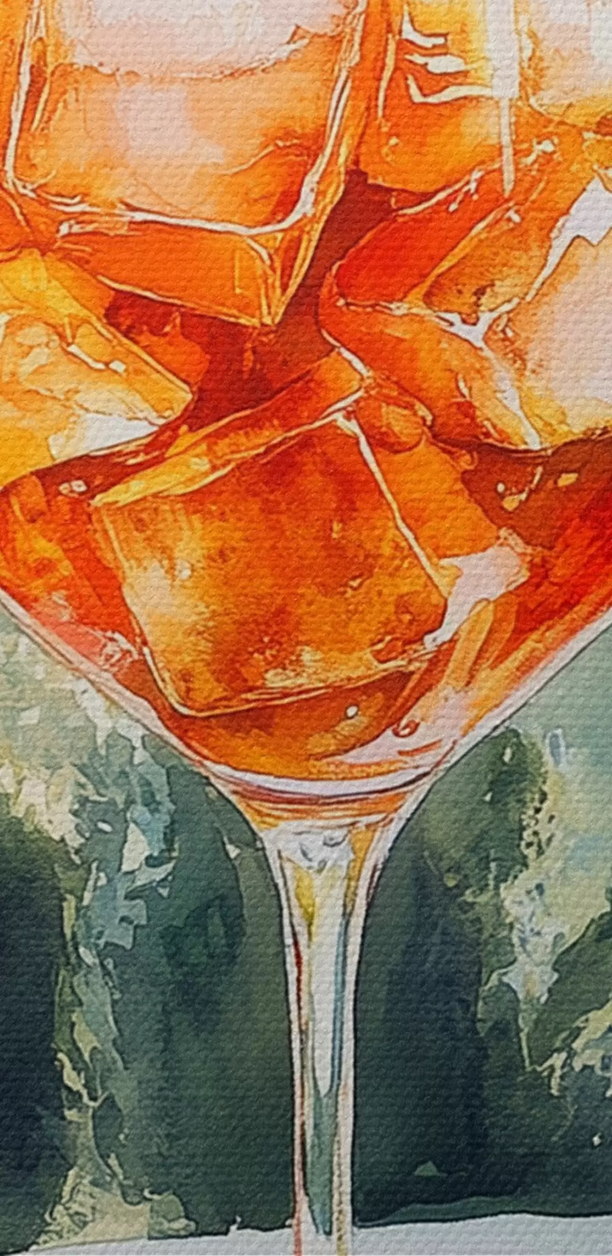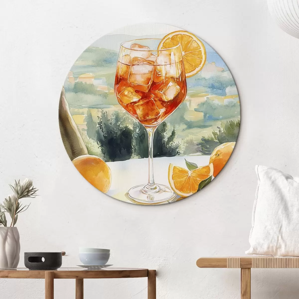 Ronde schilderijen Zomercocktail, Aperol Spritz, sinaasappels, aquareltekening Nr r43058