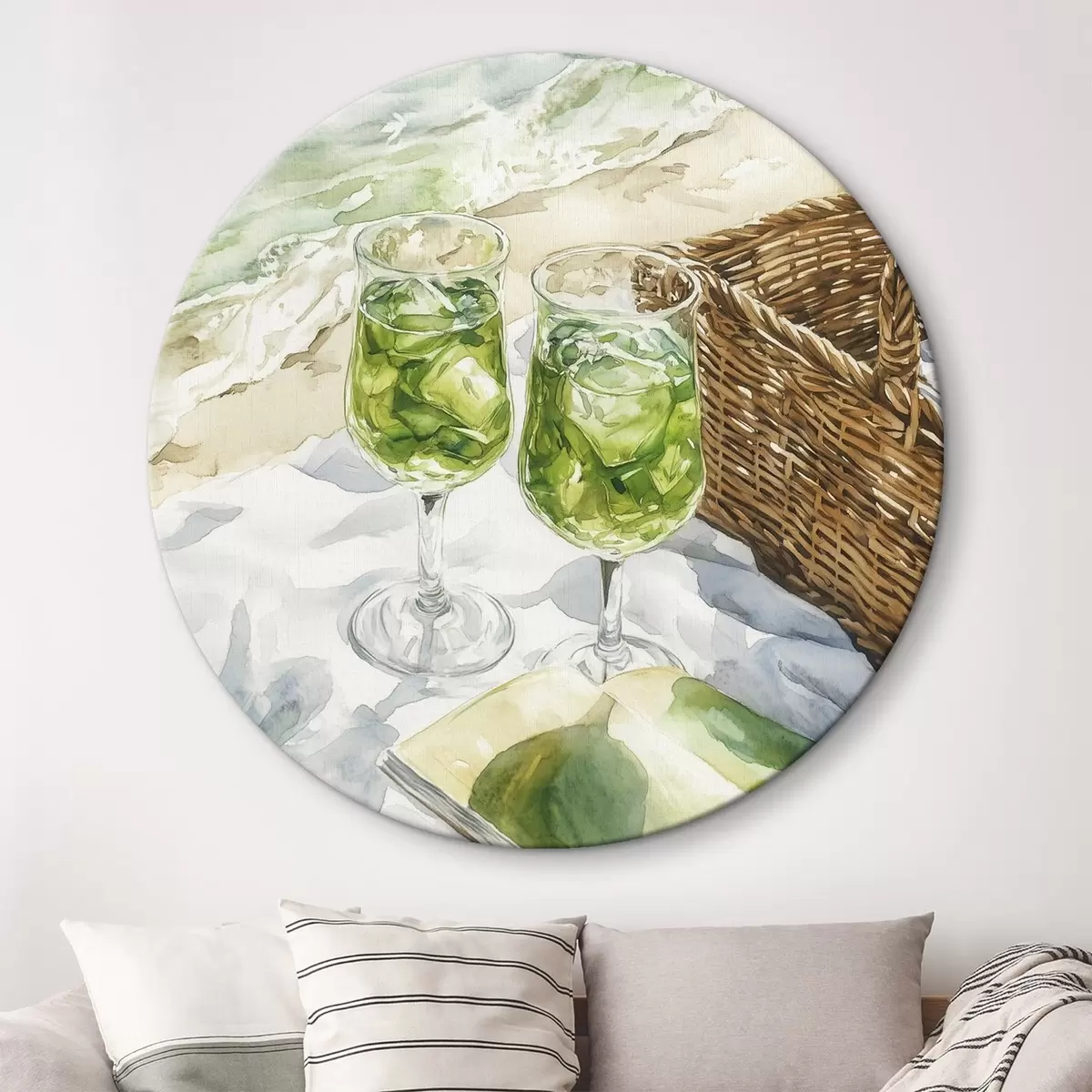 Ronde schilderijen Cocktails op het strand, aquarel tekening, oceaan, zomer r43067
