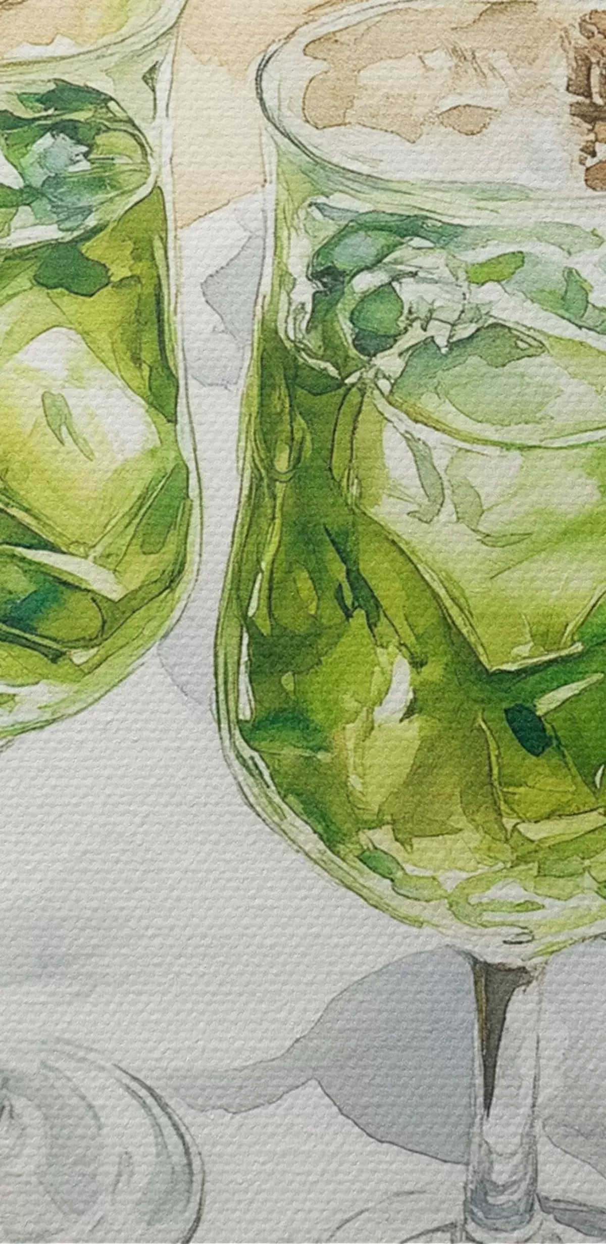Ronde schilderijen Cocktails op het strand, aquarel tekening, oceaan, zomer Nr r43067