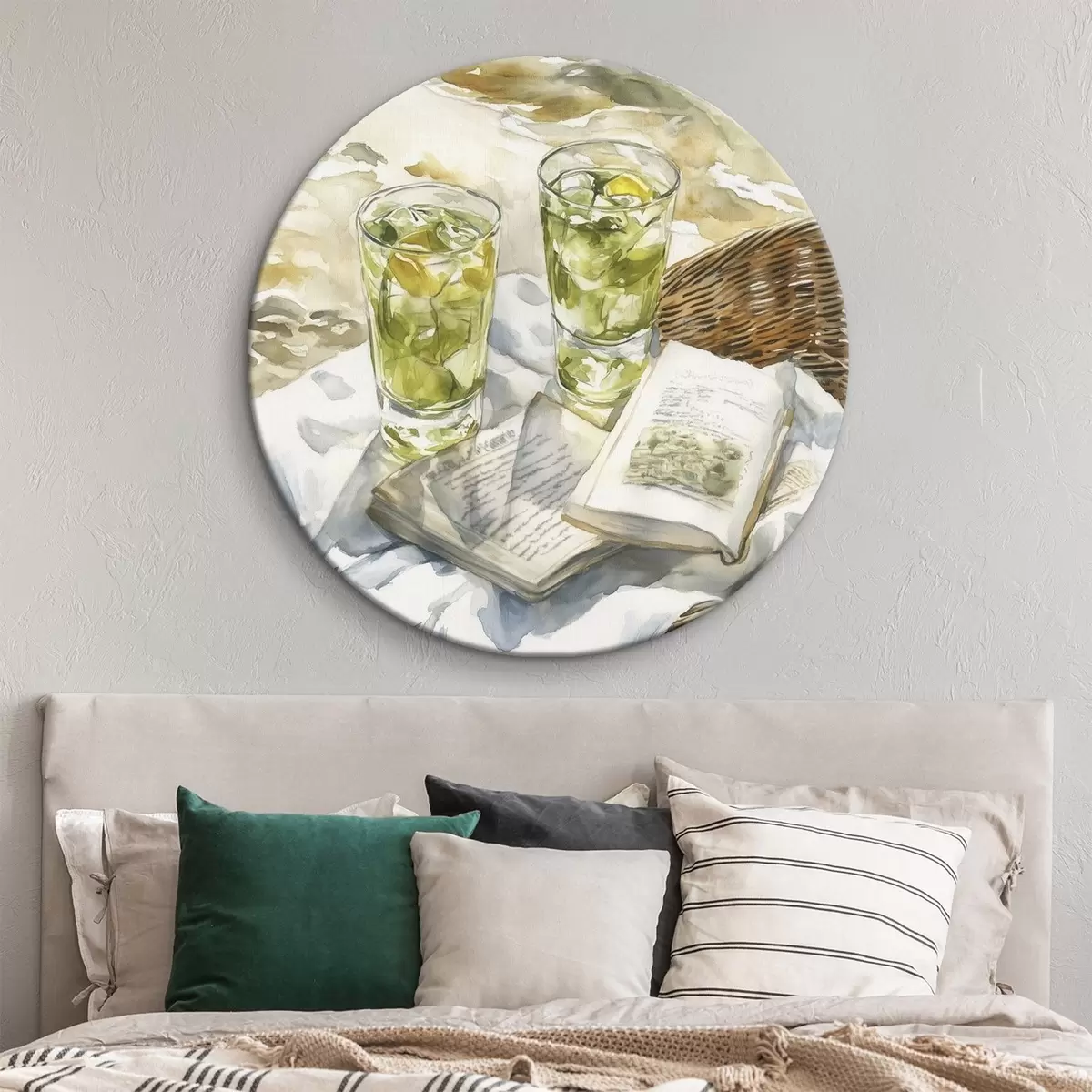 Ronde schilderijen Picknick aan zee, zomercocktails, poëzie, aquarelstijl r43068
