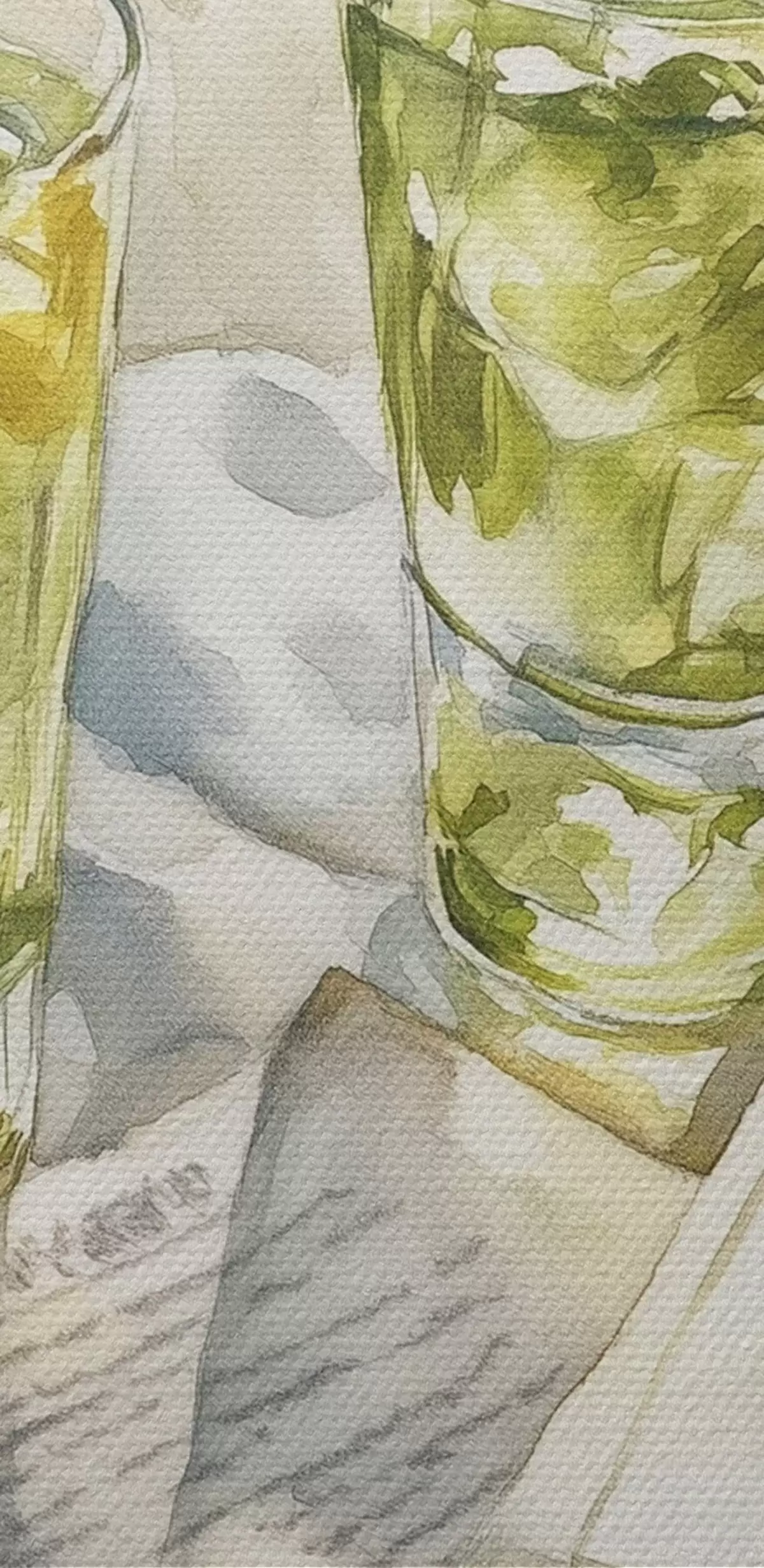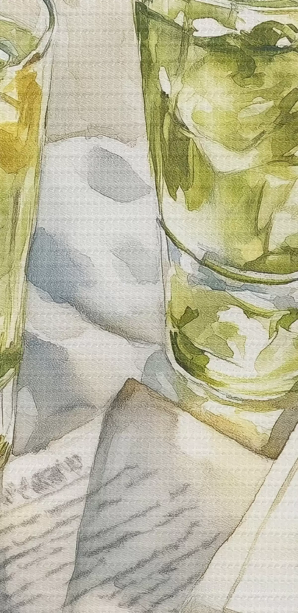 Ronde schilderijen Picknick aan zee, zomercocktails, poëzie, aquarelstijl Nr r43068