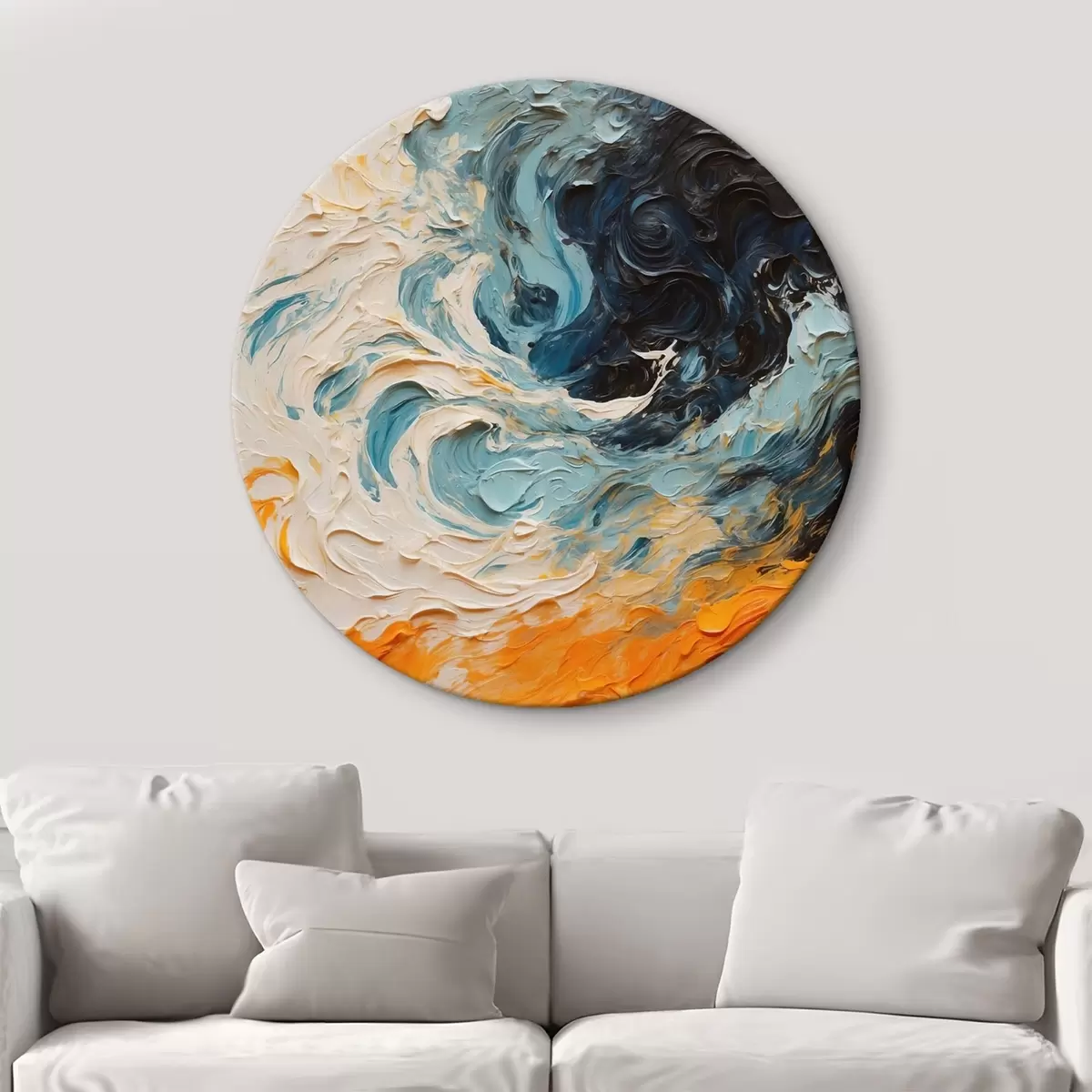 Ronde schilderijen Abstracte woeste zee in olieverfschilderijstijl Nr r43095