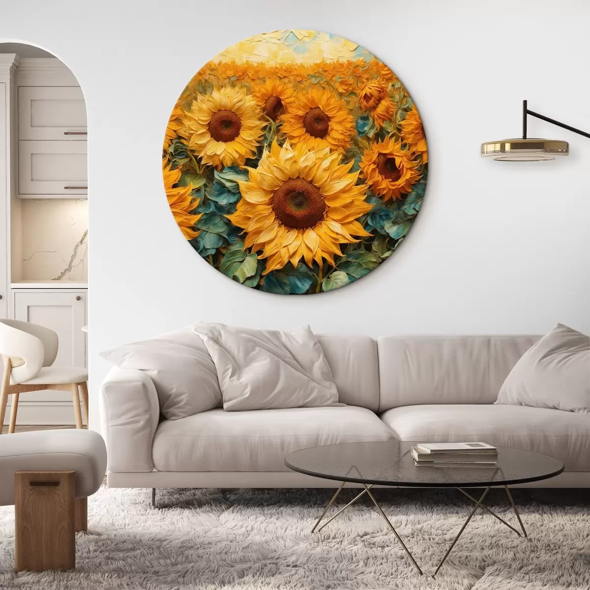 Ronde schilderijen Zonnebloemenveld in acrylschilderstijl Nr r43104
