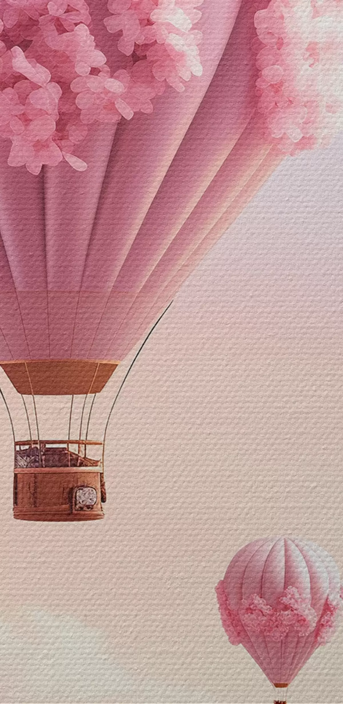 Ronde schilderijen Roze ballonnen in de bergen Nr r43121