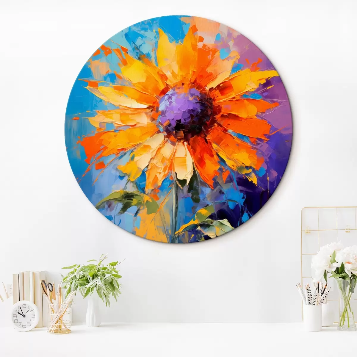 Ronde schilderijen Een levendige zonnebloem in abstracte schilderstijl Nr r43133