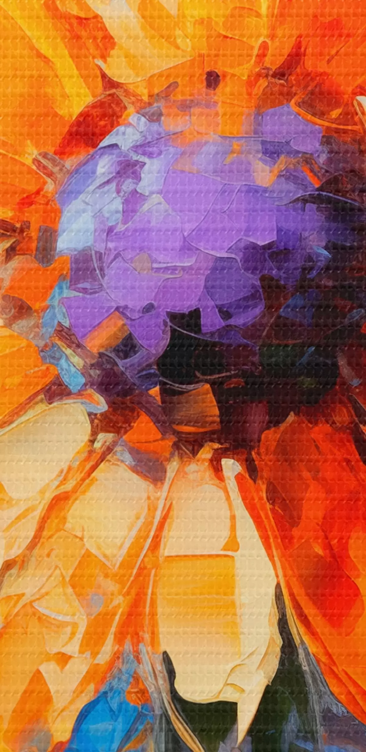 Het schilderij kan direct na ontvangst worden opgehangen. Het schilderij wordt opgespannen op een 2 cm breed houten spieraam.