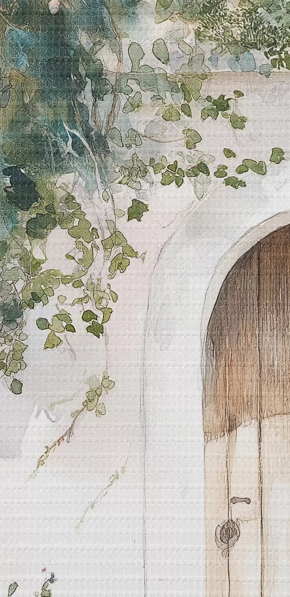 De fijne weving van draden op dit doek lijkt op het oppervlak van professionele schildersdoeken.