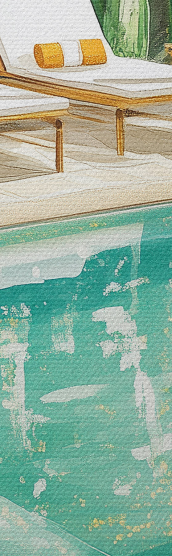 Ronde schilderijen Tropische natuur, tuin, zomerzwembad, surfen, aquarelstijl r43190