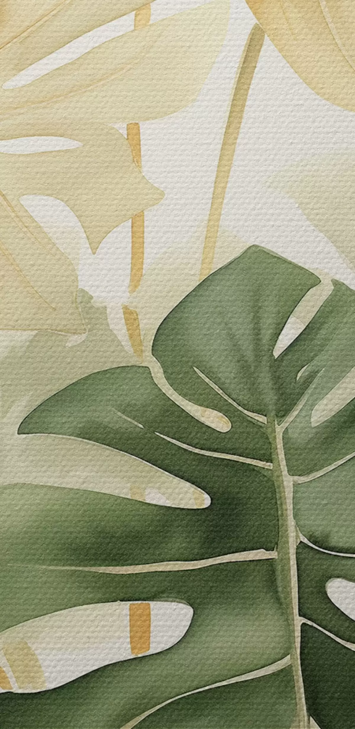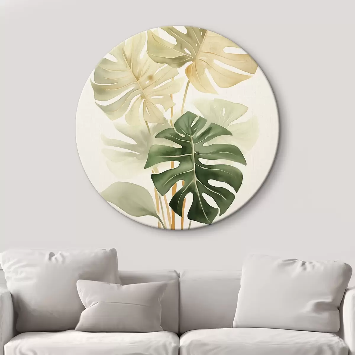 Ronde schilderijen Monsterabladeren, imitatie van aquarel Nr r43209