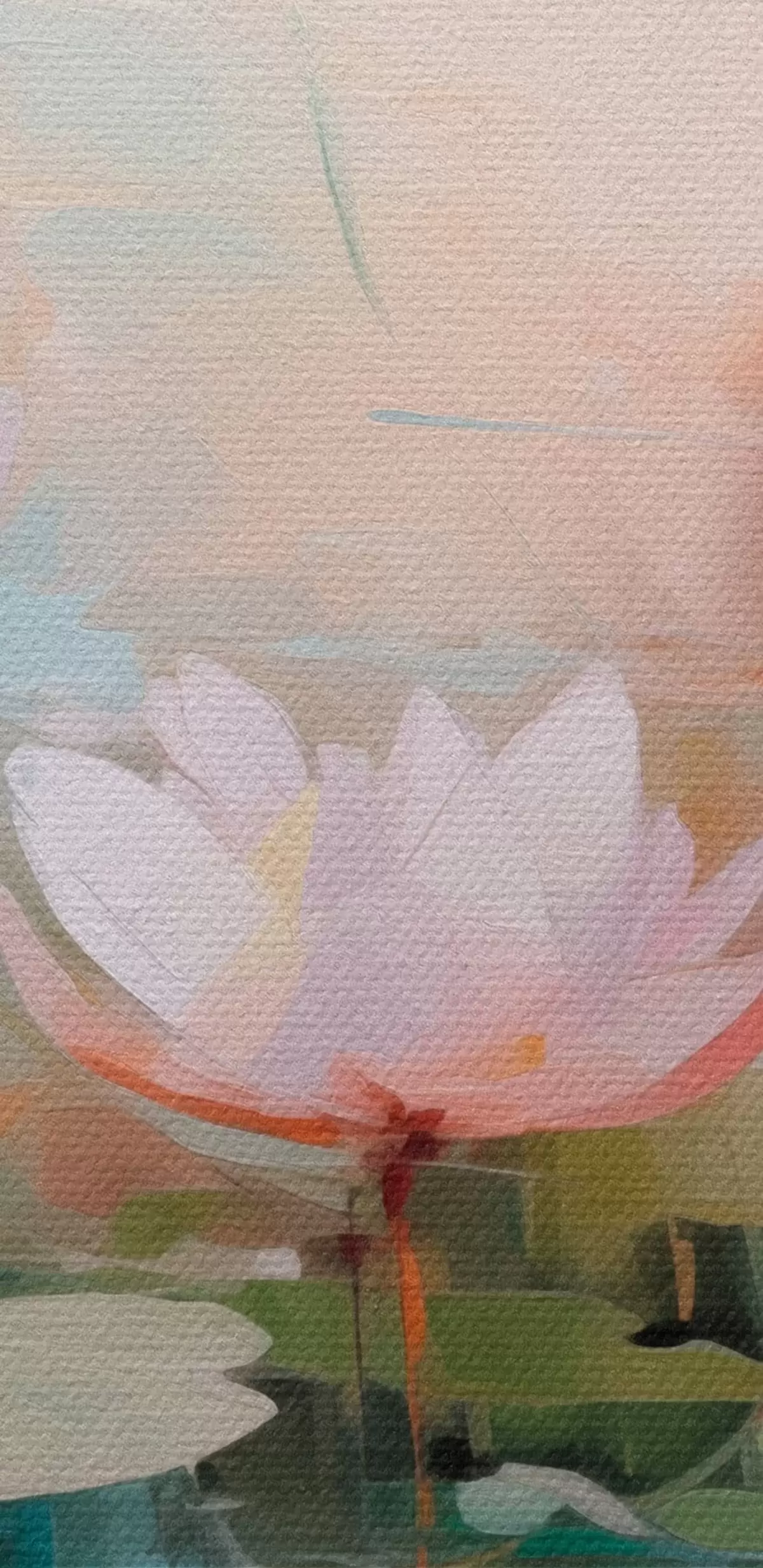 Het schilderij kan direct na ontvangst worden opgehangen. Het schilderij wordt opgespannen op een 2 cm breed houten spieraam.