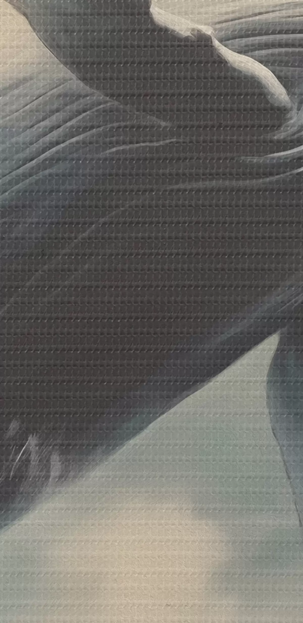 Om het doek op te spannen op spielatten zonder de afbeelding te beschadigen, gebruiken we gespiegeld beeld.