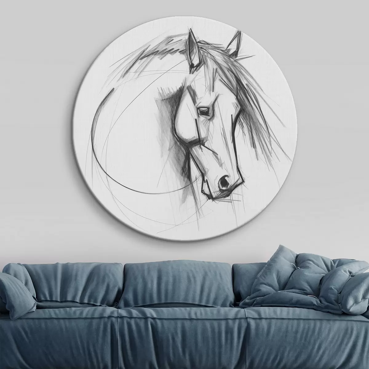 Ronde schilderijen Paard imitatie schets Nr r43231