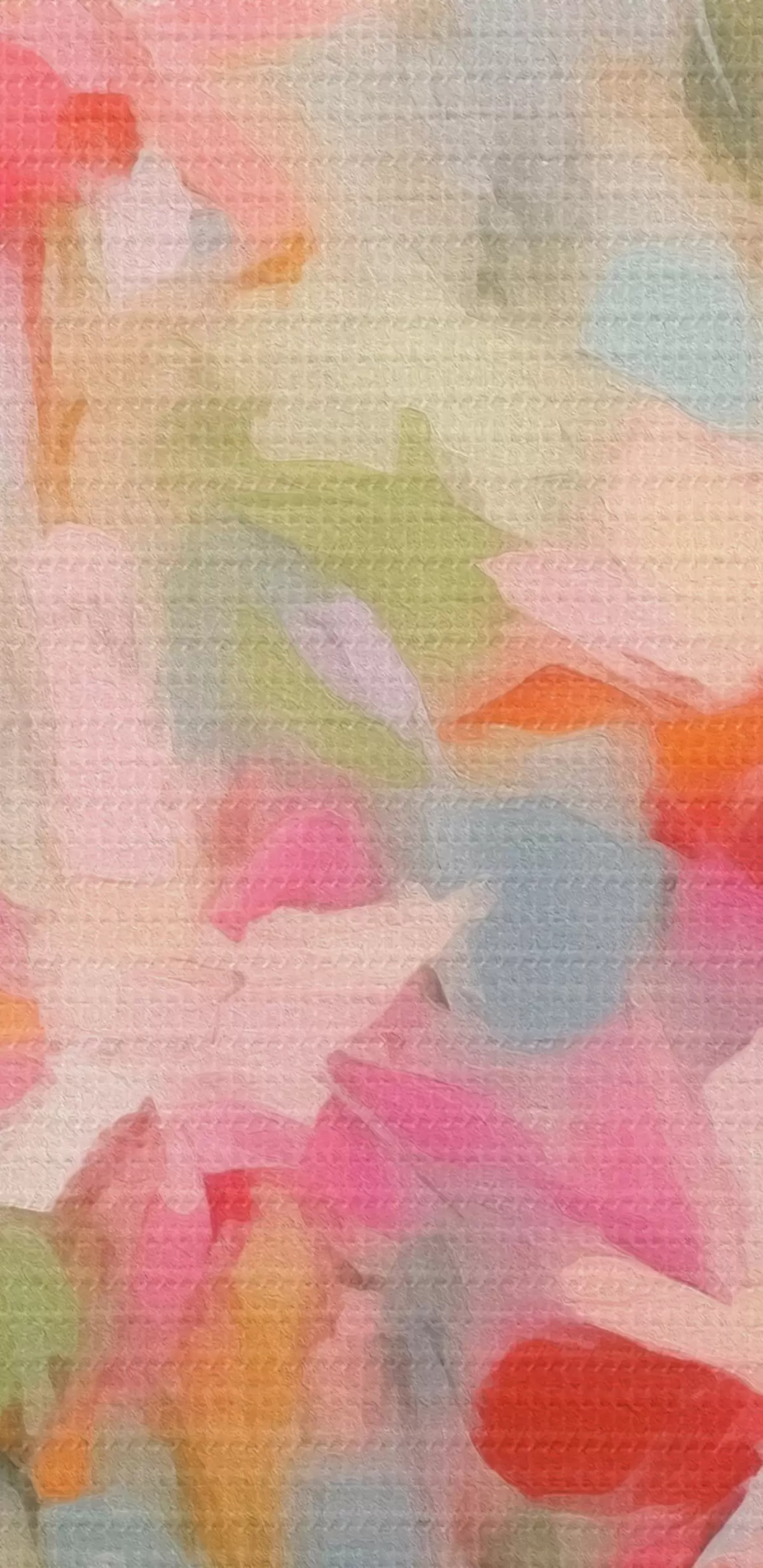 Het schilderij kan direct na ontvangst worden opgehangen. Het schilderij wordt opgespannen op een 2 cm breed houten spieraam.
