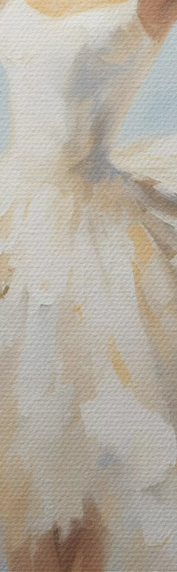 Het schilderij kan voorzichtig worden schoongeveegd met een droge zachte doek of spons; het wordt niet aanbevolen om natte producten te gebruiken. Het gebruik van een vochtige spons is alleen toegestaan als het schilderij gevernist is.