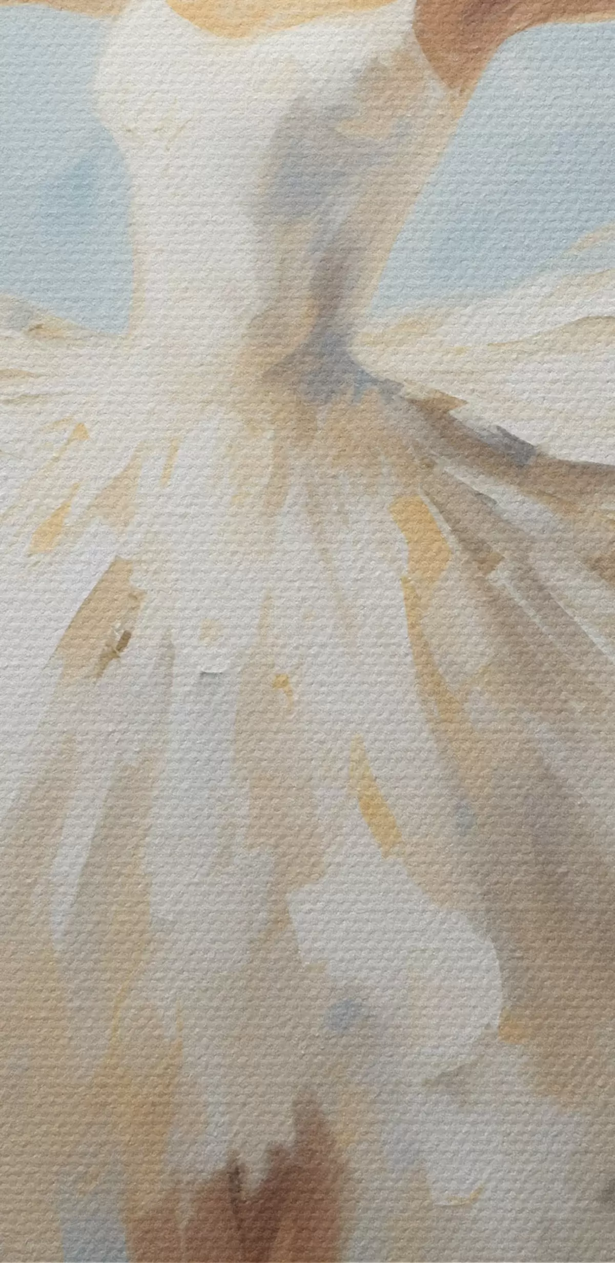 Het schilderij kan direct na ontvangst worden opgehangen. Het schilderij wordt opgespannen op een 2 cm breed houten spieraam.
