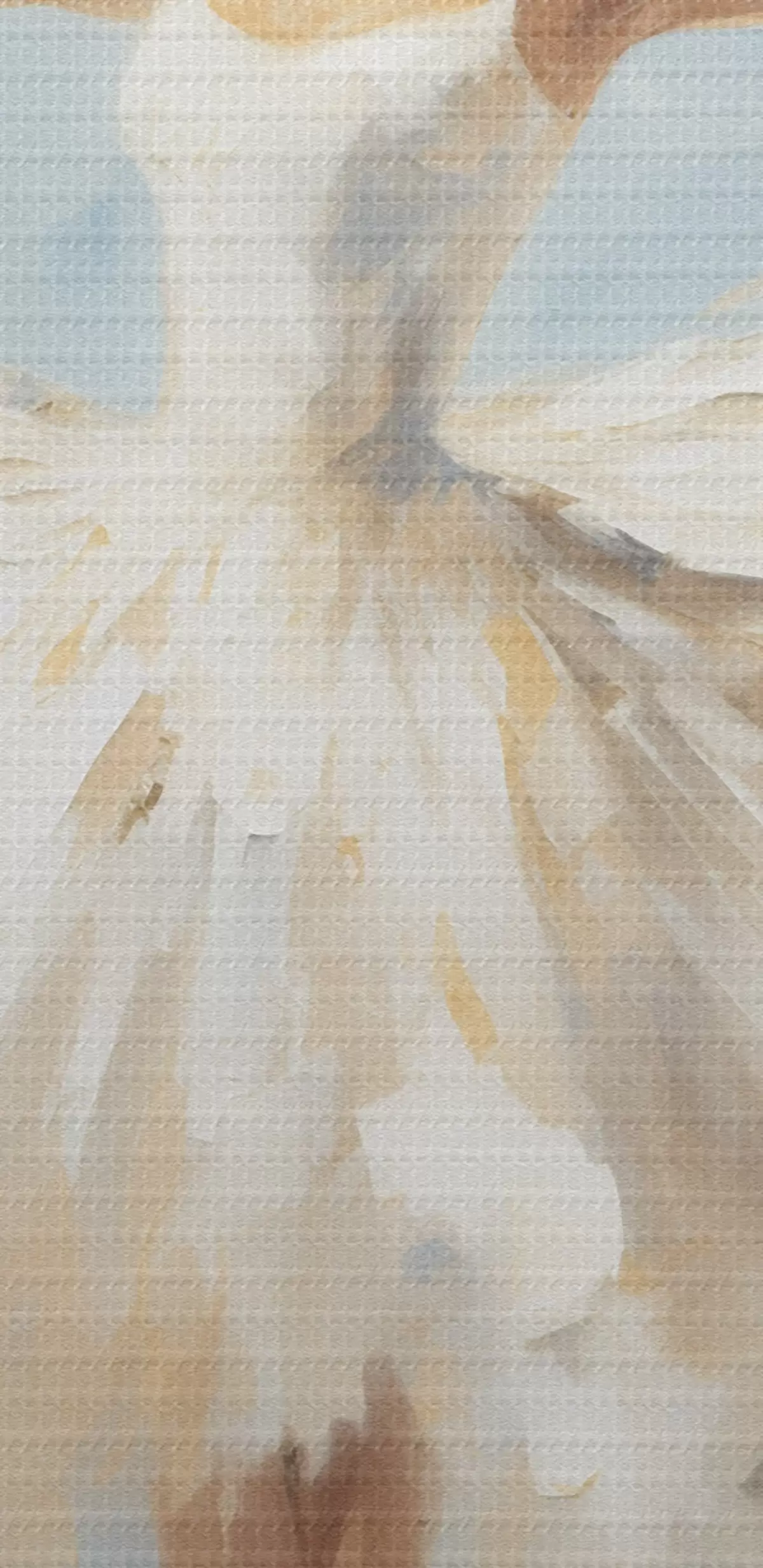 De fijne weving van draden op dit doek lijkt op het oppervlak van professionele schildersdoeken.