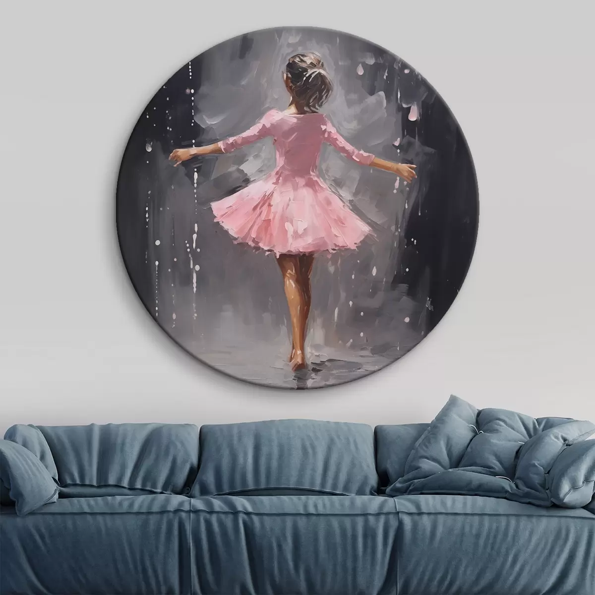 Ronde schilderijen Mensen, meisje in roze jurk, imitatie olieverfschilderij r43258