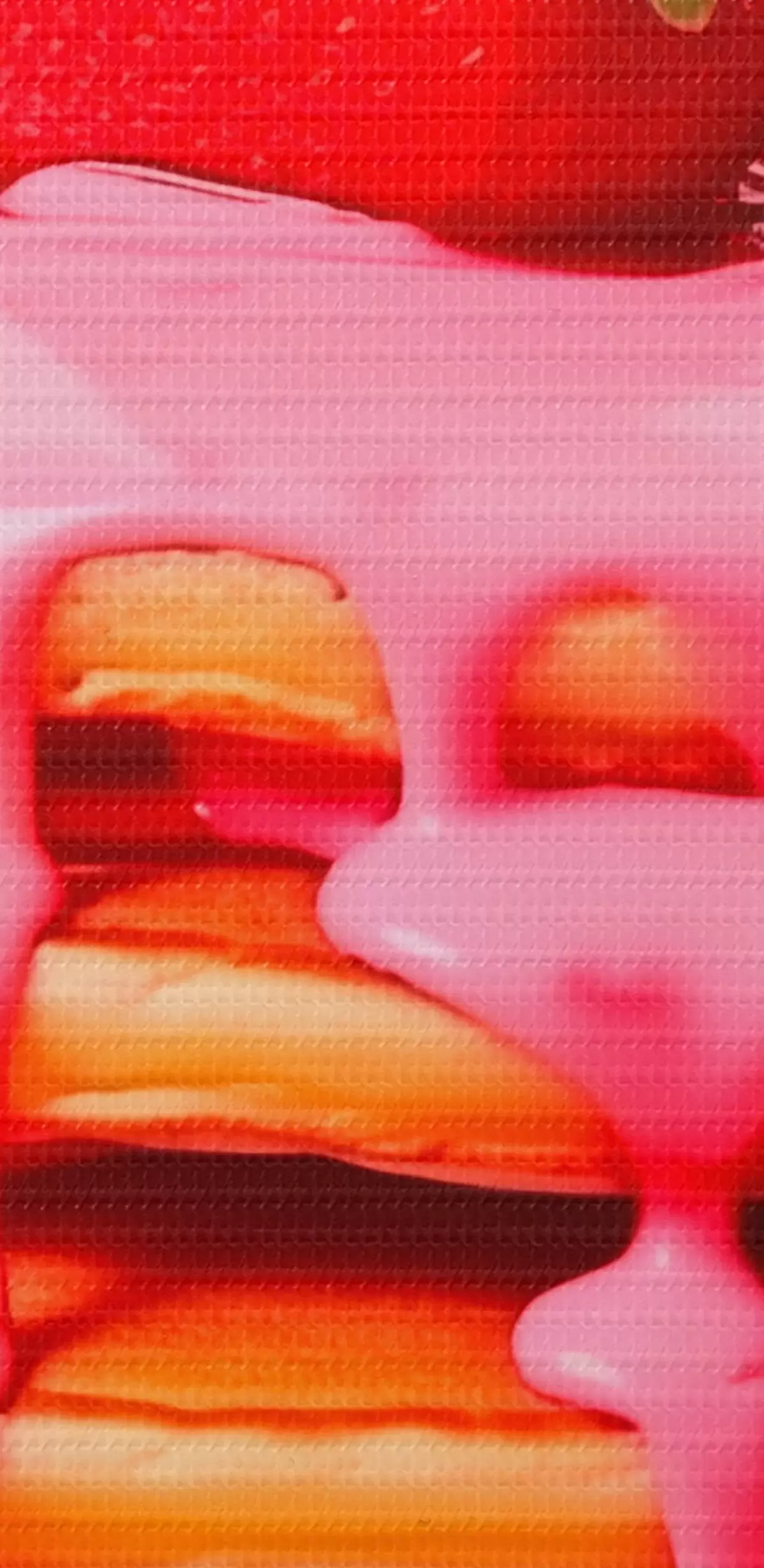 Ronde schilderijen Pannenkoeken met aardbeien en roze glazuur Nr r43263