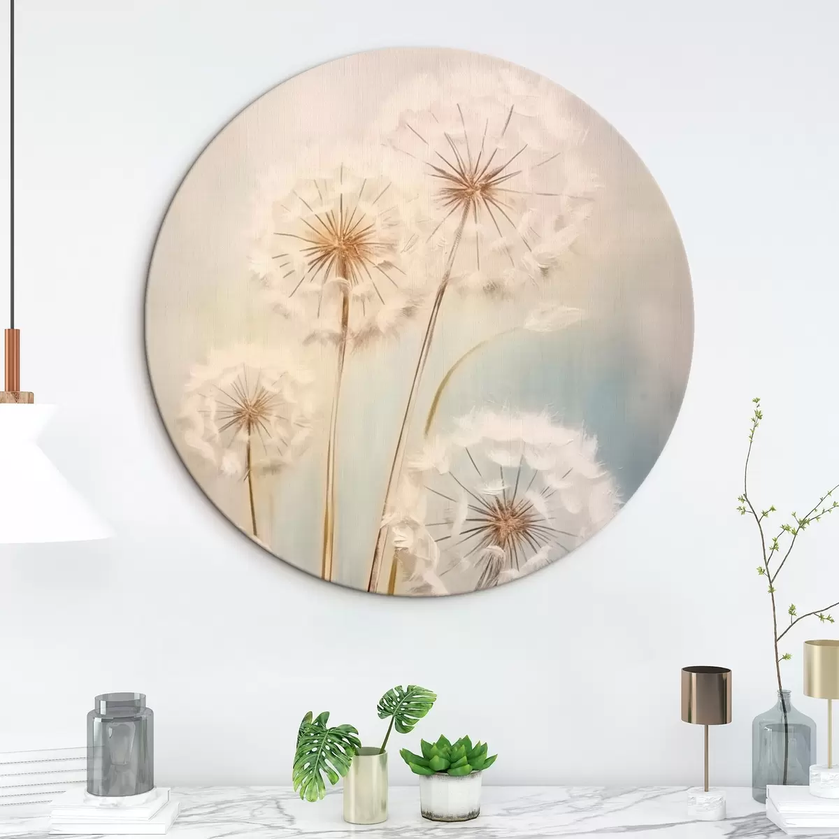Ronde schilderijen Delicate paardenbloemen op een pastelkleurige achtergrond Nr r43279