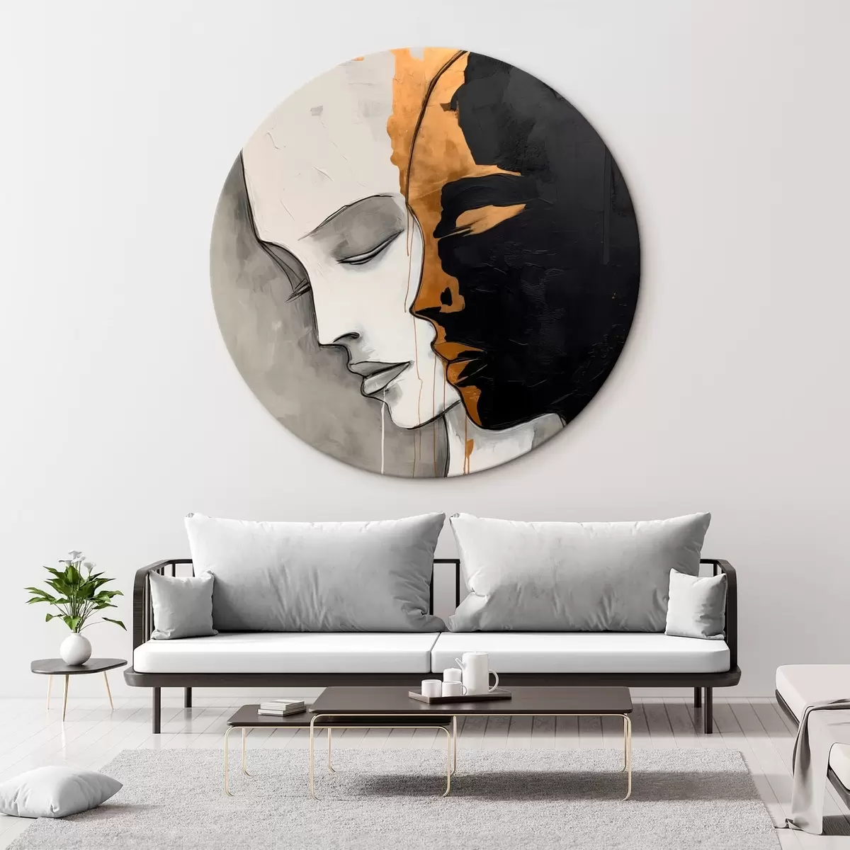 Ronde schilderijen Contrasterende silhouetten met abstracte accenten Nr r43280