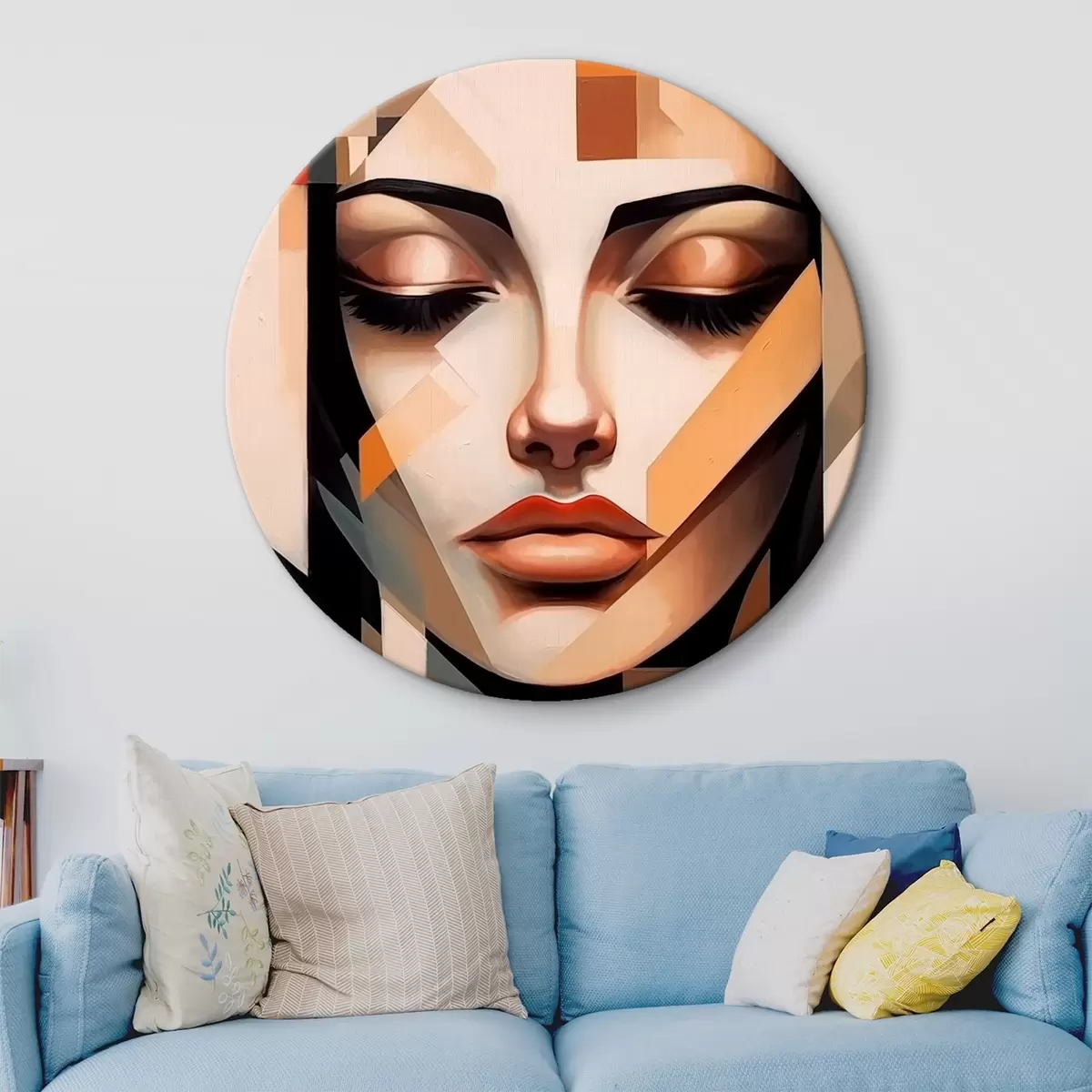 Ronde schilderijen Geometrisch portret in warme kleuren Nr r43281