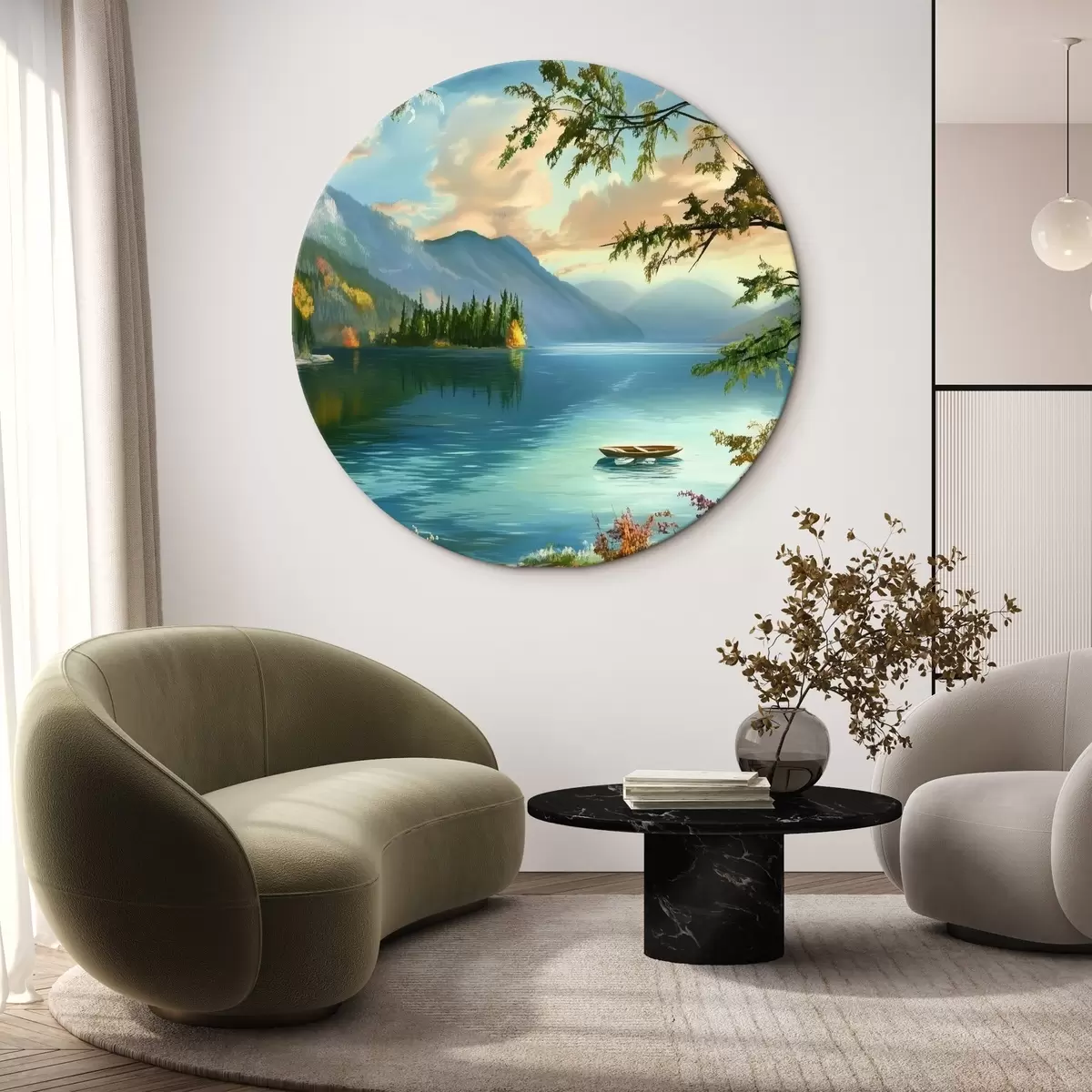 Ronde schilderijen Landschap van een meer in de bergen Nr r43286