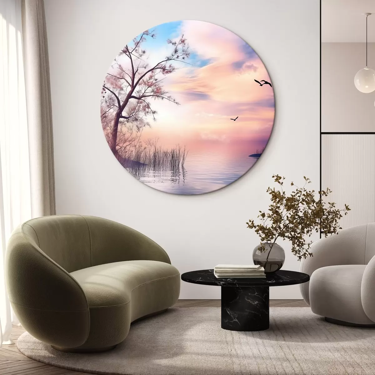 Ronde schilderijen Dageraad op het meer Nr r43287