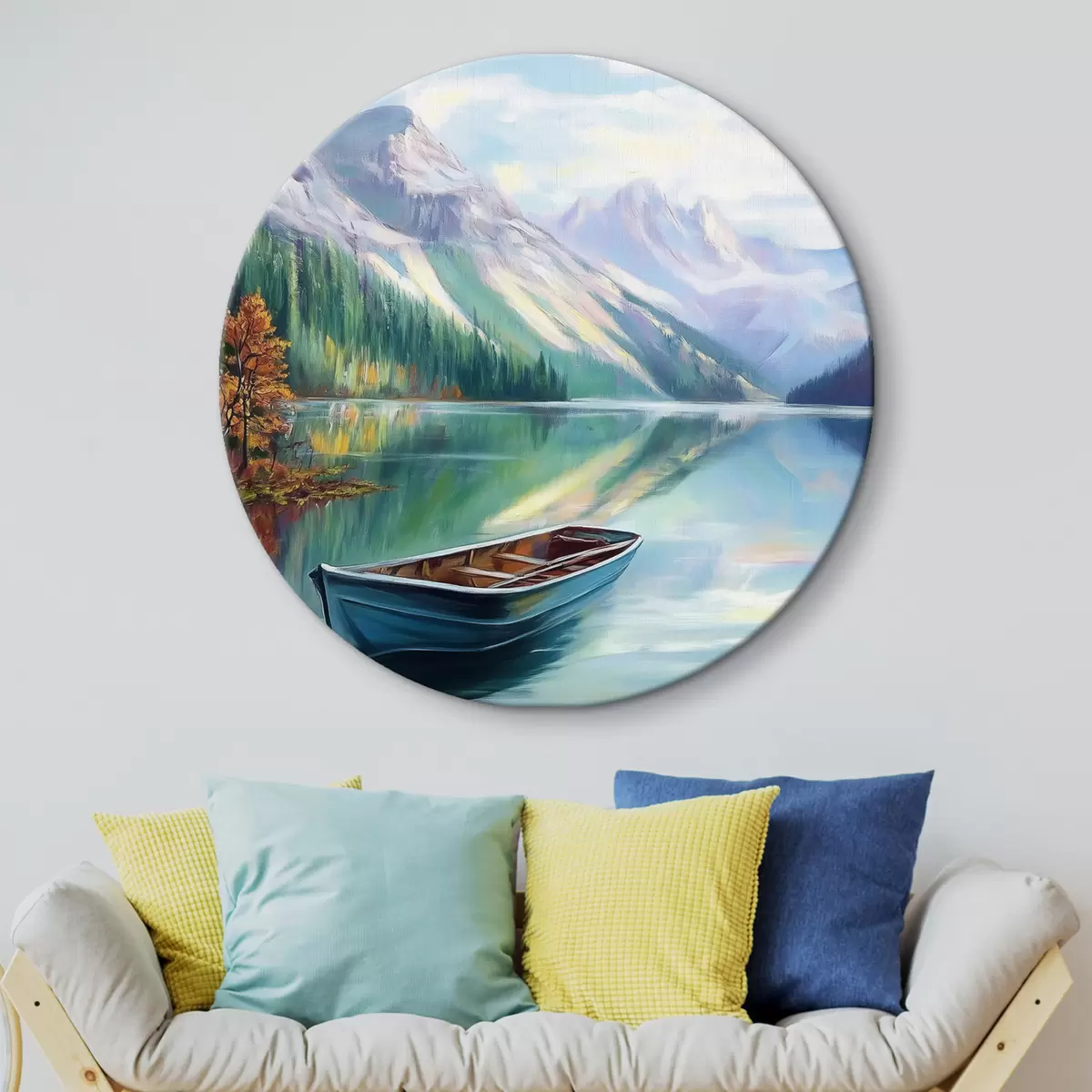 Ronde schilderijen Prachtig meer in de bergen r43289