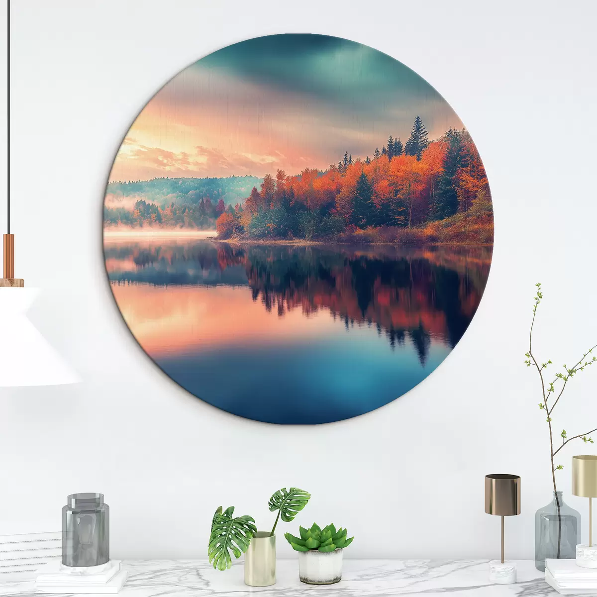 Ronde schilderijen Dageraad op het meer in de herfst Nr r43290