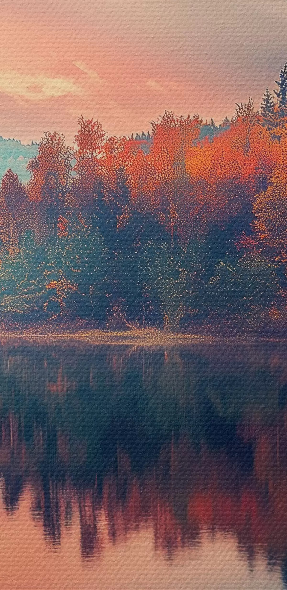 Er zijn drie soorten materiaal te bestellen: Economic Canvas - een dicht en duurzaam materiaal voor digitaal printen, identiek aan schildersdoek, waterdicht oppervlak, realistische weergave van details, materiaal met gemiddelde korrel. Premium Canvas - de textuur lijkt op die van schildersdoek (verweven kleine draden). Zachte, gedetailleerde reproductie van de afbeelding op een mat oppervlak. Eco-Premium - hoogwaardige 100% katoenen stof. Dankzij de natuurlijke katoenvezels is het materiaal duurzaam en slijtvast. Uitstekende kleurweergave en detail.