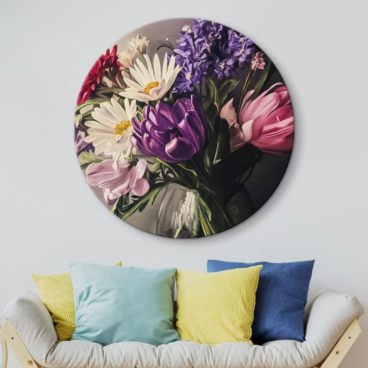 Ronde schilderijen Boeket bloemen in een vaas Nr r43292