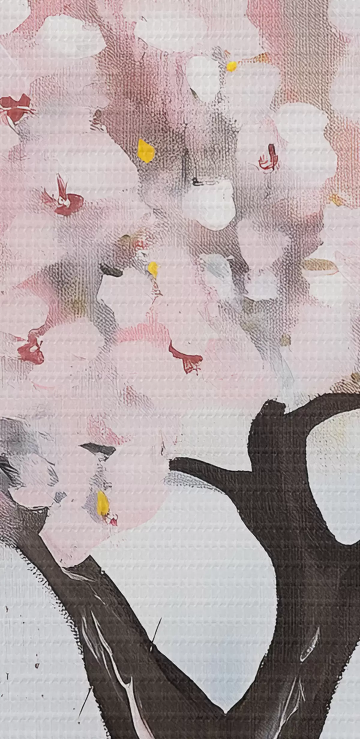 De fijne weving van draden op dit doek lijkt op het oppervlak van professionele schildersdoeken.