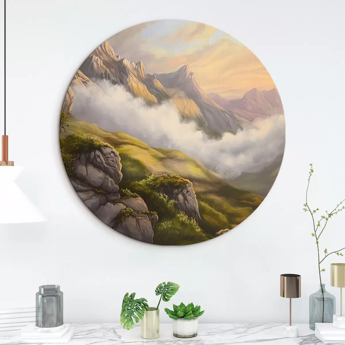 Ronde schilderijen Berglandschap r43302