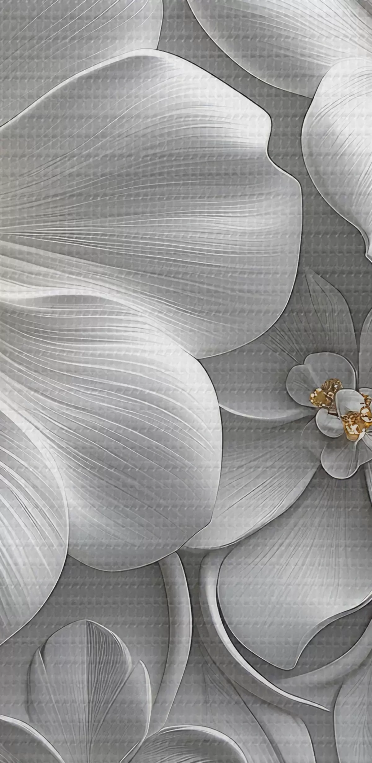 Ronde schilderijen 3d grijze bloemen met een geel accent r43310