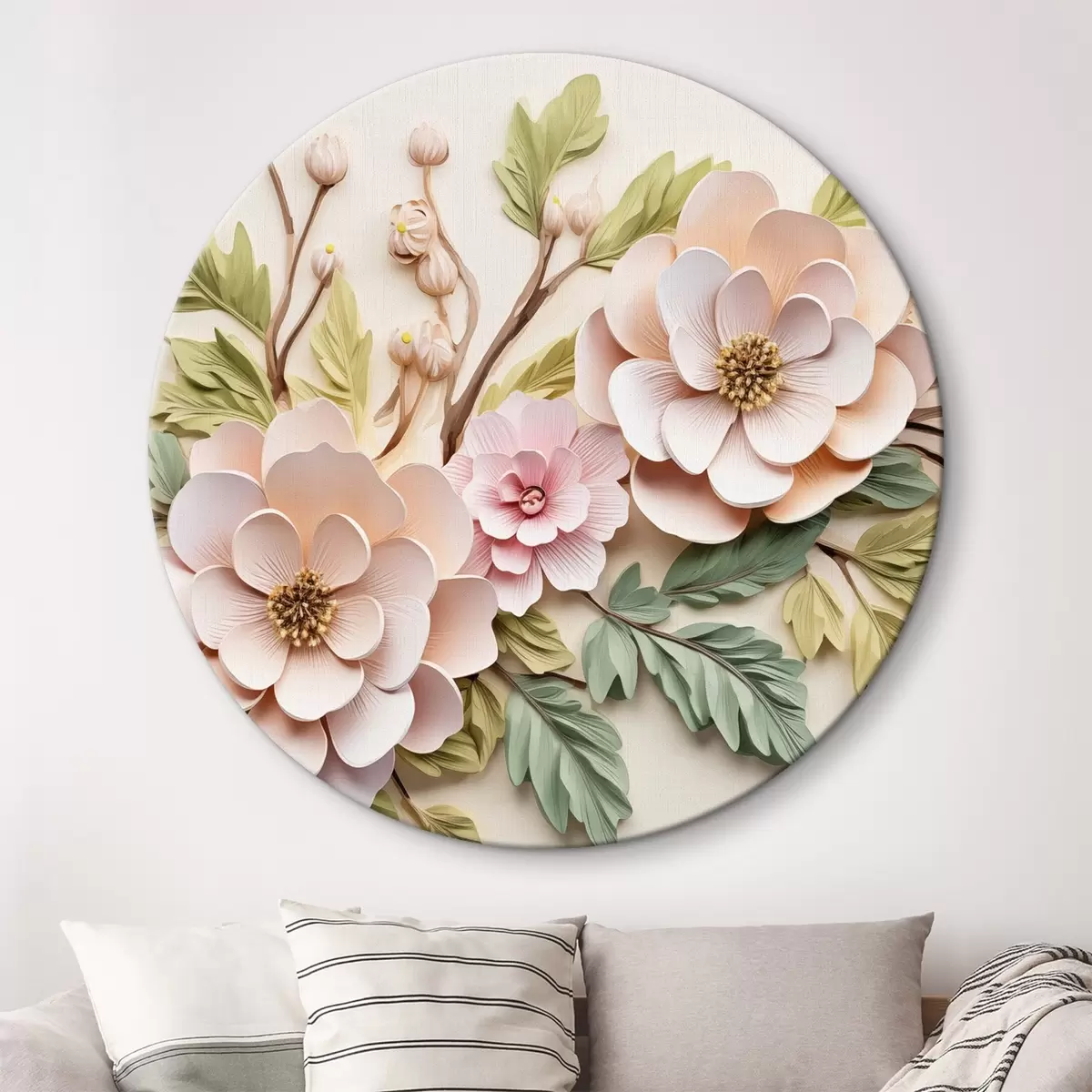 Ronde schilderijen Grote bloemtakken, imitatie van gieten Nr r43333