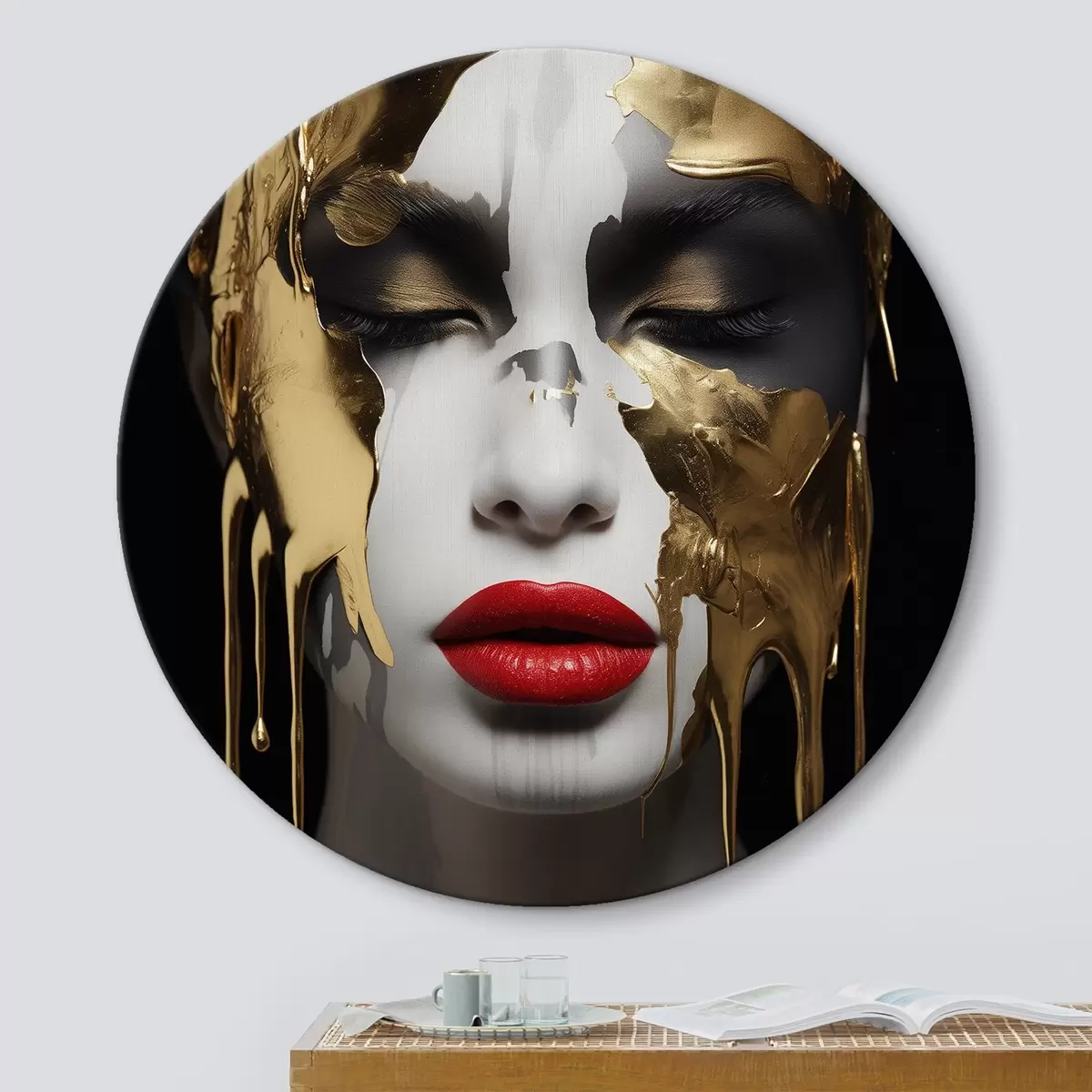 Ronde schilderijen Mensen, meisje met rode lippen Nr r43336