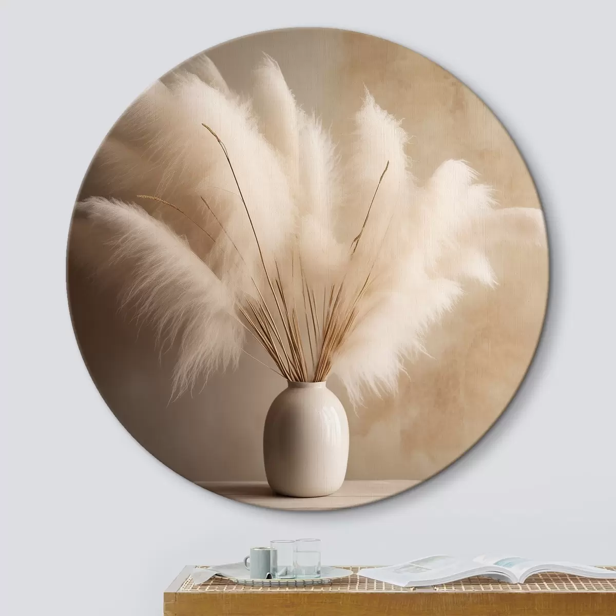 Ronde schilderijen Pluizige takken riet in een vaas op tafel Nr r43338